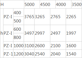 1、水泵房底板標(biāo)高和水倉(或配水巷)入口標(biāo)高之高差H與連接桿長度h值,本設(shè)計考慮四種情況,如下表所示:(單位:毫米)